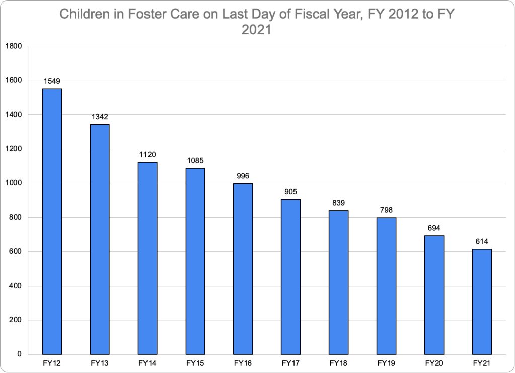 CFSA data for last quarter of FY 2021: foster care cases continue to fall