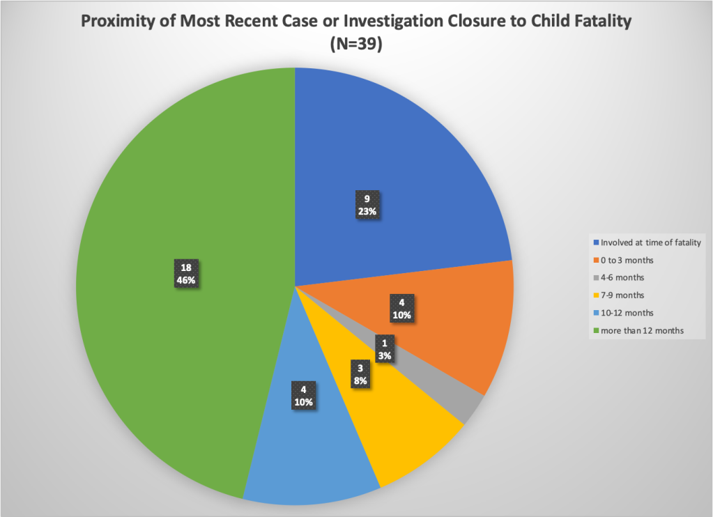 Note: One family was not included because they had no open case or investigation during the five years before the child fatality. The family did have four screened-out referrals.