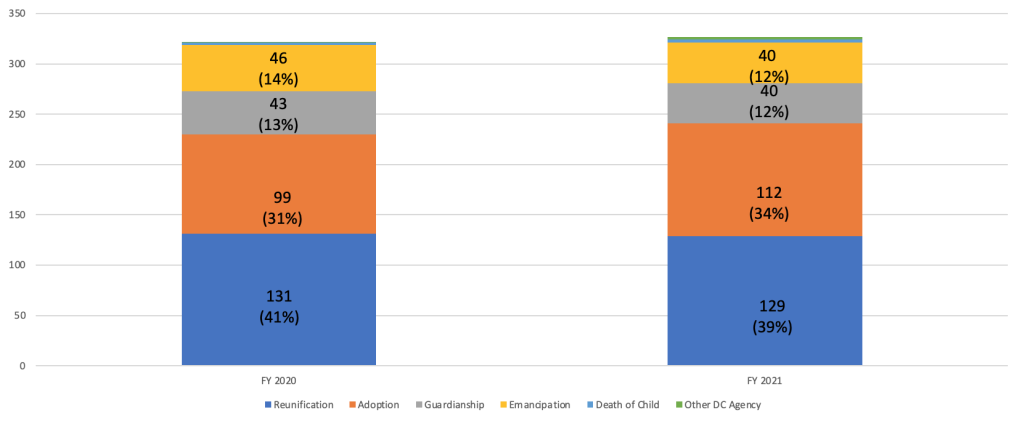 Source: CFSA Data Dashboard, https://cfsadashboard.dc.gov/page/exits-reason